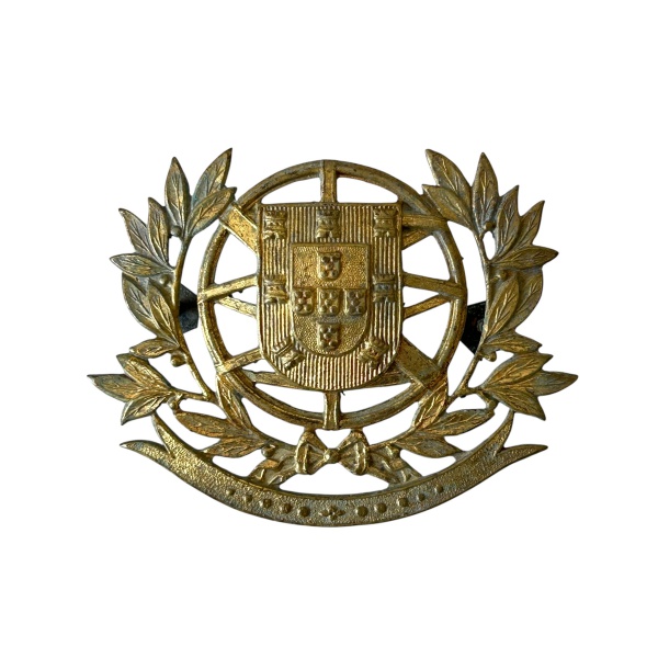 • BRASIL IMPÉRIO - Antigo aplique representando brasão do império português envolto em louros em bronze ormolu, medindo 6,5cm de largura e 5cm de altura.