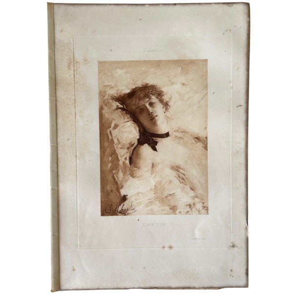 • Antiga gravura não emoldurada representando Lage dor por Ch. Chaplin do salão de arte de 1890, medindo 32x22cm.